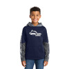 The granite-like Mineral Freeze print is strategically placed along with two solid team colors in this pullover that wicks moisture. 5.5-ounce, 100% polyester Tag-free label Anti-static Three-panel hood No drawcord at hood Solid self-fabric hood lining Sublimated Mineral Freeze print on hood and sleeves Two-tone sleeves Taped neck Self-fabric cuffs and hem Front pouch pocket